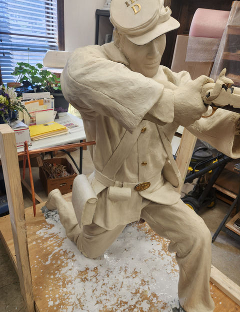 The third soldier is an infantryman who represents the other 111th soldiers. Sculptor Gary Casteel used photographs of Hicks and Derby to create their facial likenesses in clay, to be ultimately cast in bronze. Casteel has created dozens of bronze sculptures, several of which are installed at Gettysburg National Military Park.